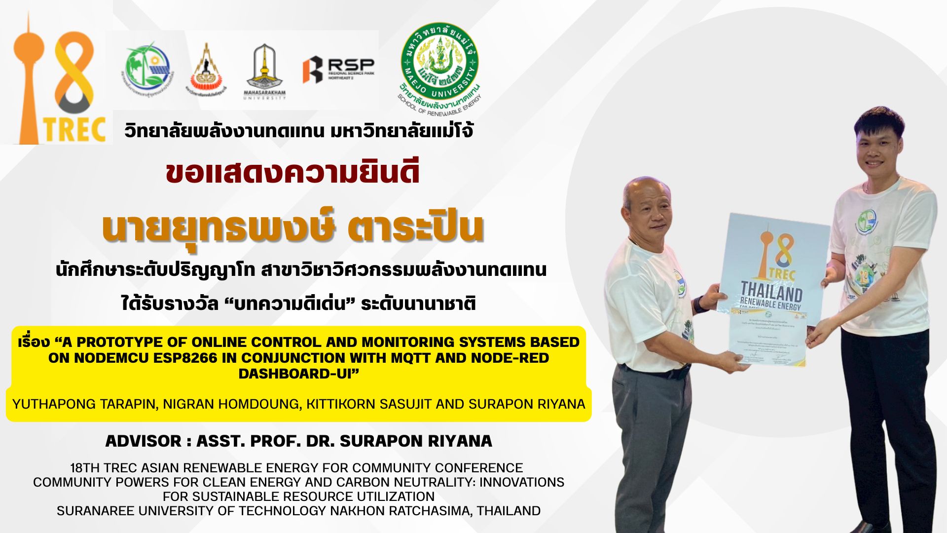 1.เรื่อง “A Prototype of Online Control and Monitoring Systems based on NodeMCU ESP8266 in conjunction with MQTT and Node-RED dashboard-UI” โดย นายยุทธพงษ์ ตาระปิน และคณะ